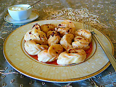 6. sos için tereyağını eritip pulbiberle karıştırın. servis tabağındaki halujları bu sosla karıştırın ve yoğurtla servis yapın.