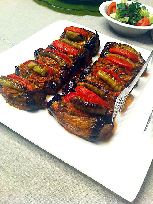 Fotoğraftaki imambayildi tabağı aslında benim menümden değil, bugün kendisine iftara gittiğimiz ve bizi harika bir sofra + ev sahipliği ile ağırlayan kuzenime ait. Doğrusu bir önceki yazıda gayet kendimden emin "2 çeşit yiyorum" dedikten sonra böyle bir sofrayla karşılaşınca kendimle epey mücadele ettim. Neyseki mücadeleden galip çıkabildim. Hem benim bu haftayı büyük bir hengame içerisinde atlatmış olmamdan, hem de minik minik patlıcanların harika sunumundan ötürü de bu yazının fotoğrafının onlar olmasına karar verdim.