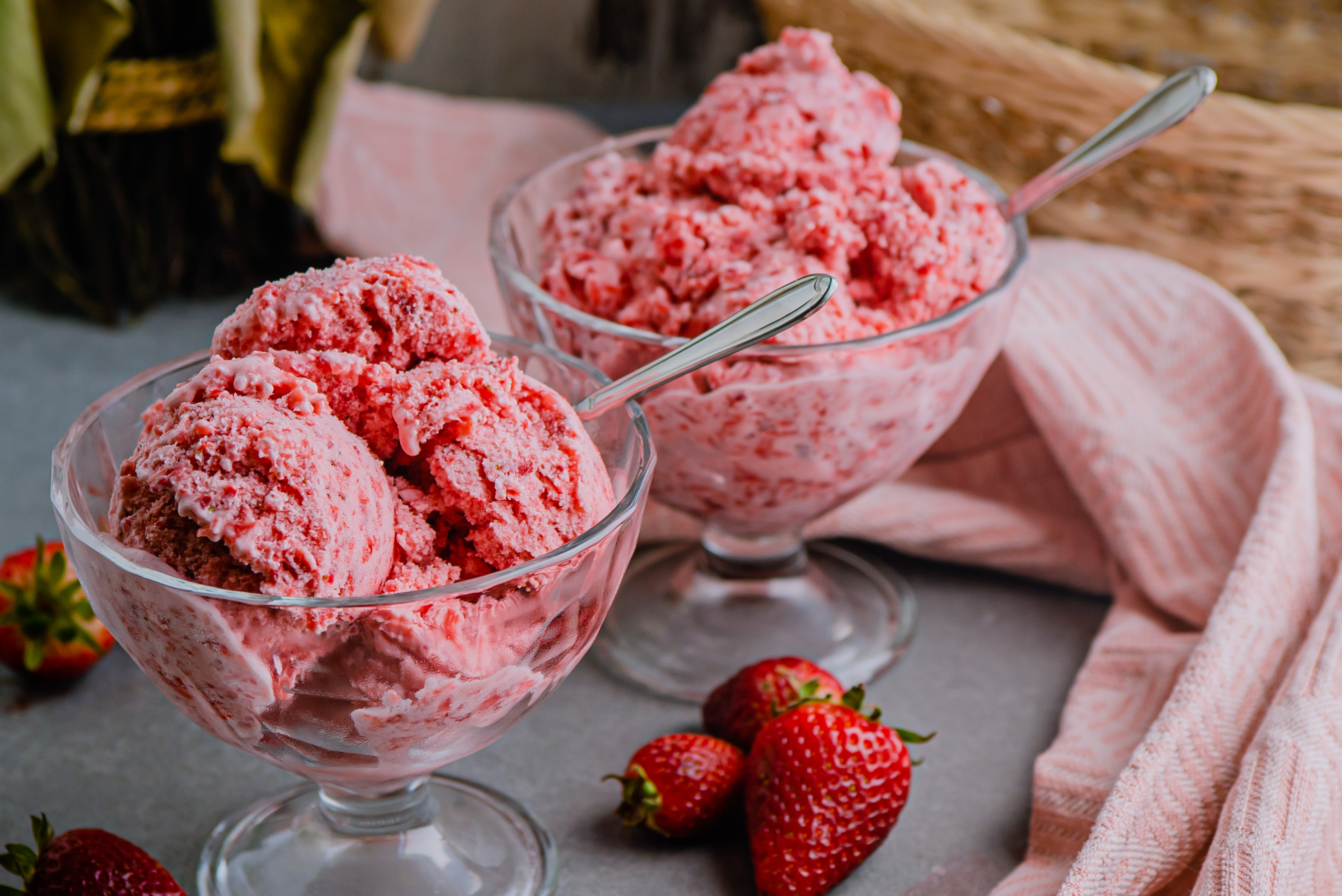 Mümkünse metal bir kabı 24 saat önceden buzdolabında soğutun. (Baton kek kalıbı, çırpma kabı ya da tencere de olur)Ertesi sabah (sabahtan başlamak önemli) çilek ve pudra şekerini robotta çekin. Kremayı mikserle krem santi kıvamına gelene kadar çırpın. Çilekli sosu ekleyin. Spatulayla birbirine yedirin. Daha sonra bu karışımı 24 saatte dondurduğunuz metal kaba dökün. Saat başı buzluktan çıkarın ve tekrar karıştırın. 4-5 sefer bu aşamayı tekrarlayın, kıvamı iyiyse hazır demektir, yoksa kıvamı bulana kadar devam edin. dondurmanız hazır!